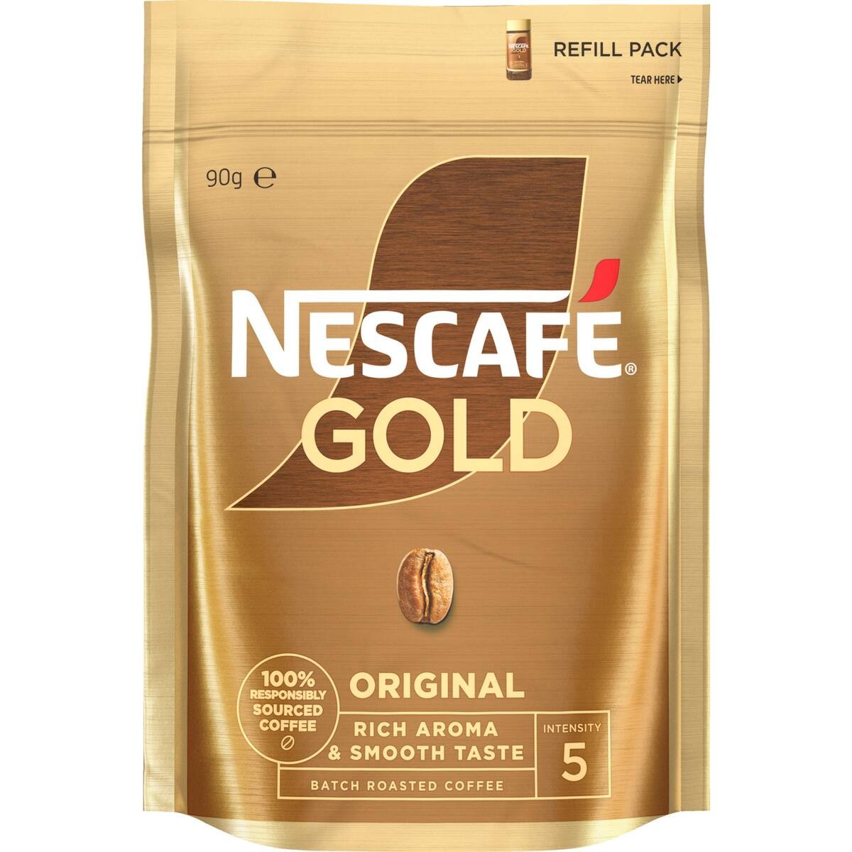 Enjoy the expertly crafted Nescafe Gold Original Instant Coffee Refill. This signature blend offers a smooth, well-balanced taste, perfect for your daily coffee break.