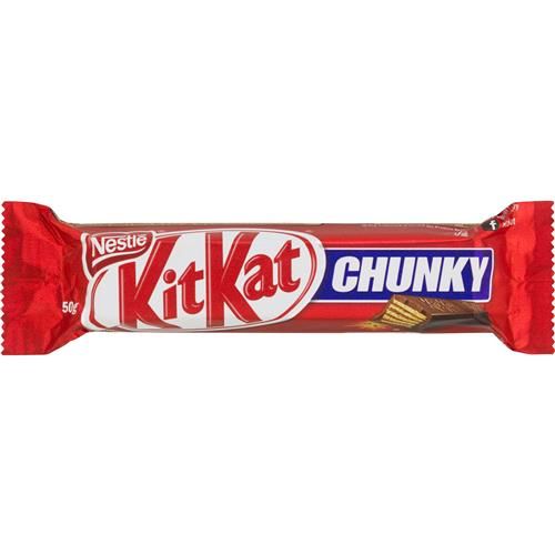The Nestle Kit Kat Chocolate Bar Original Chunky features crisp wafer fingers coated in smooth chocolate, offering a classic treat that's been enjoyed for generations. Take a break and enjoy the delicious taste of Kit Kat today.