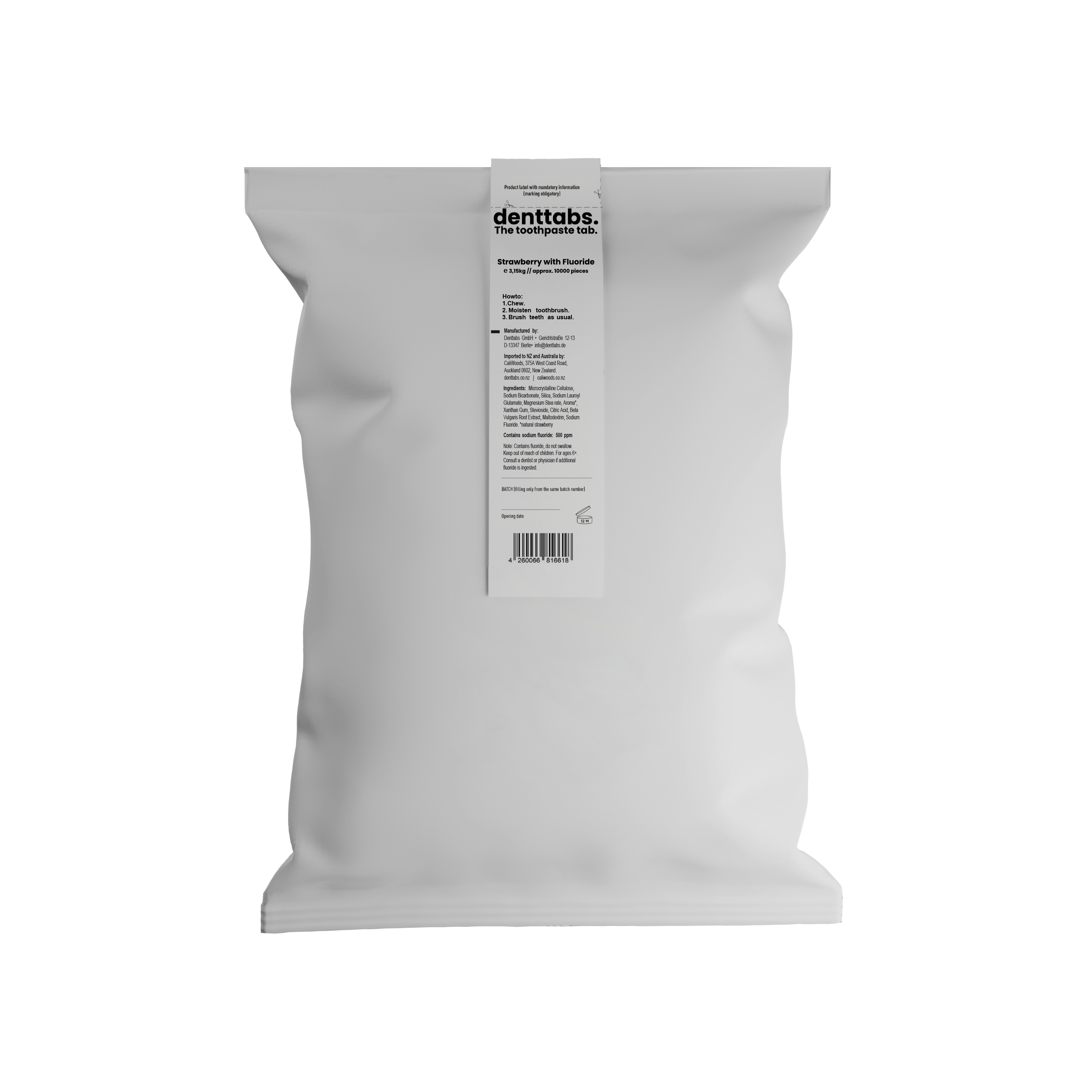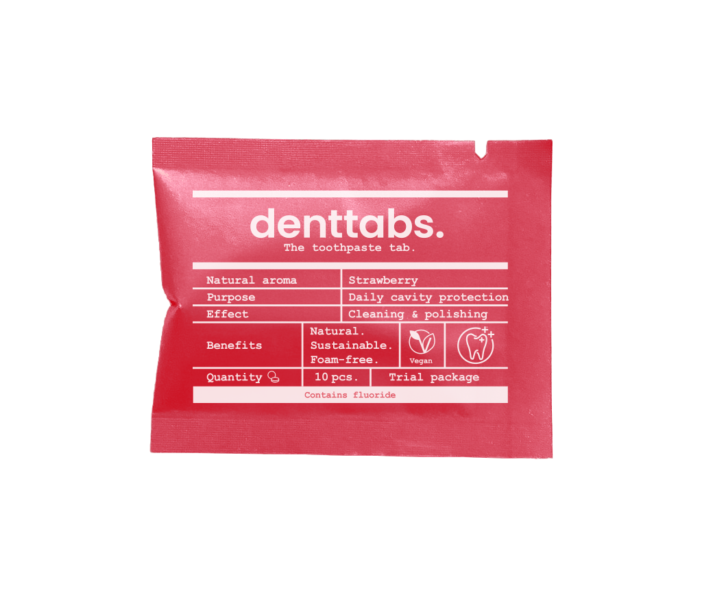 Choose from Mint or Strawberry in Fluoride or Fluoride-Free Toothpaste Tablets. Packaged in commercially compostable sachets, store in an airtight jar once opened. Team up with our Ultra-soft Denttabs Bamboo Toothbrush for ultimate oral hygiene, the natural way.