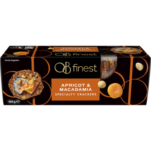 Packed with Apricot, Macadamia and crunchy seeds, OB Finest Apricot & Macadamia Specialty Crackers are the perfect accompaniment to your cheese or charcuterie platter for any entertaining or social occasion.