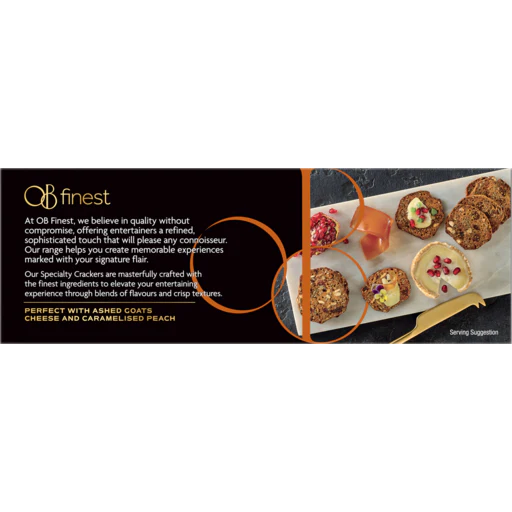 At OB Finest, we believe in quality without compromise, offering entertainers a refined, sophisticated touch that will please any connoisseur. Our range helps you create memorable experiences marked with your signature flair. Our Specialty Crackers are masterfully crafted with the finest ingredients to elevate your entertaining experience through blends of flavours and crisp textures.