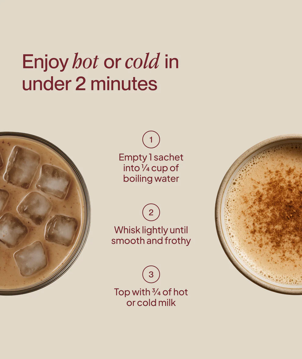 Combine with (roughly) 75ml of boiling water and whisk lightly until smooth and frothy.