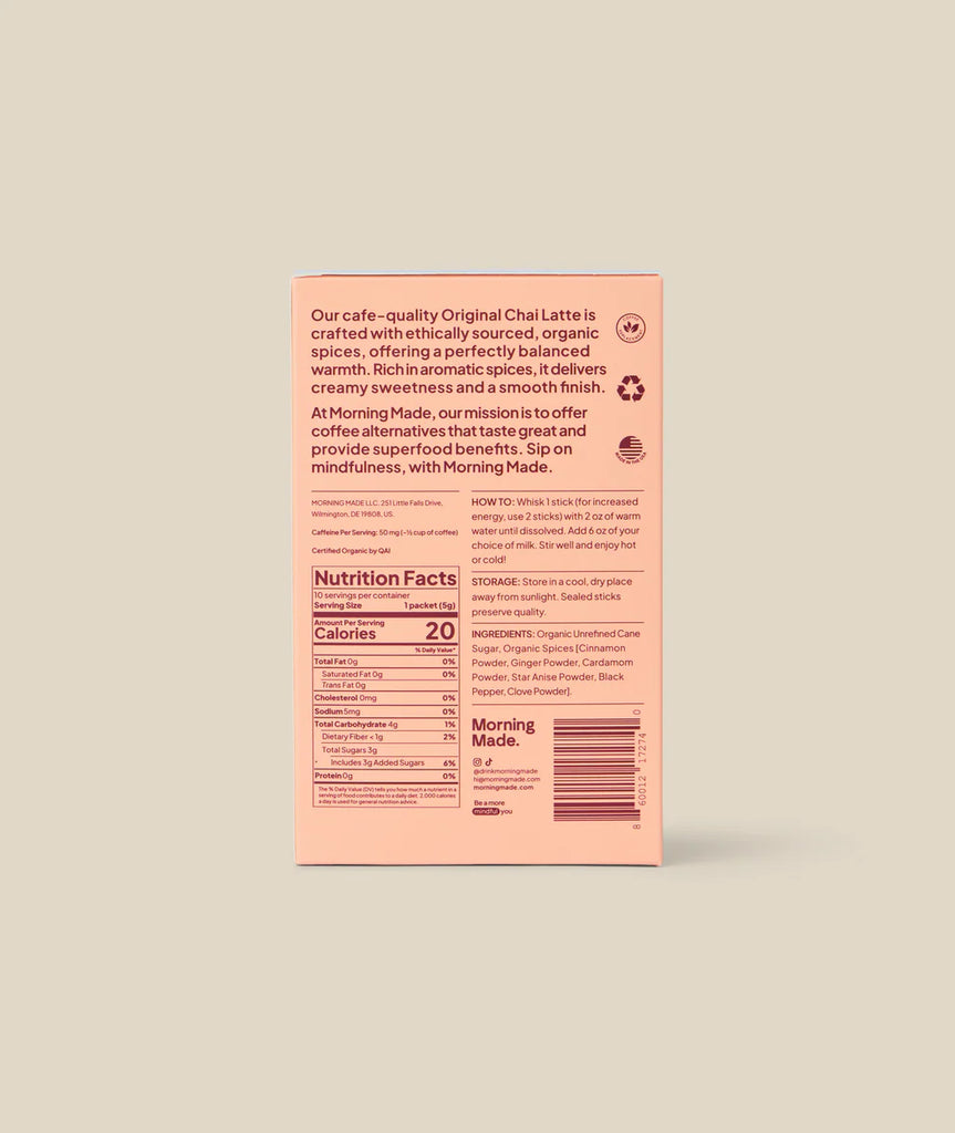 Add 1 ½ teaspoons of Morning Made Chai to your mug.