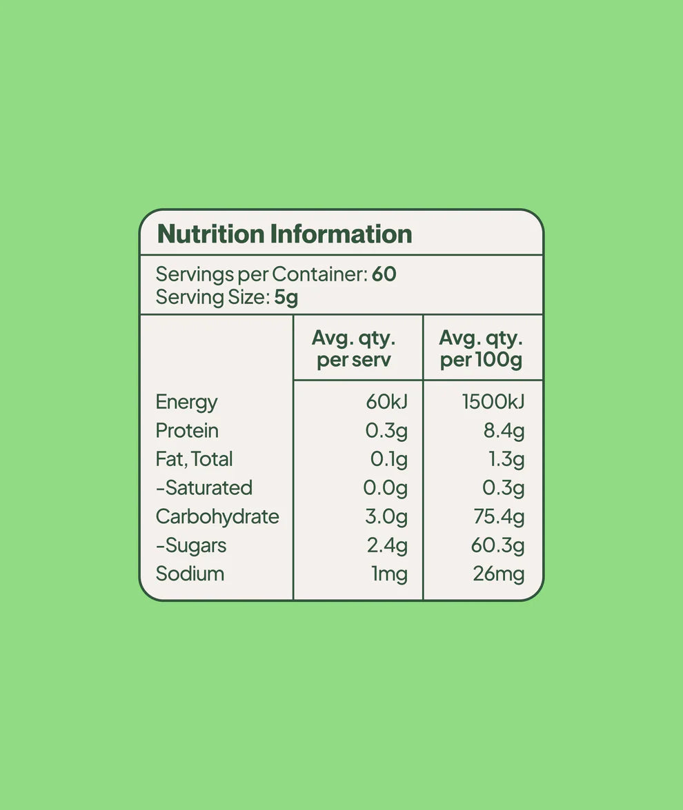 Organic Unrefined Cane Sugar, Organic Matcha (Green Tea) Powder.