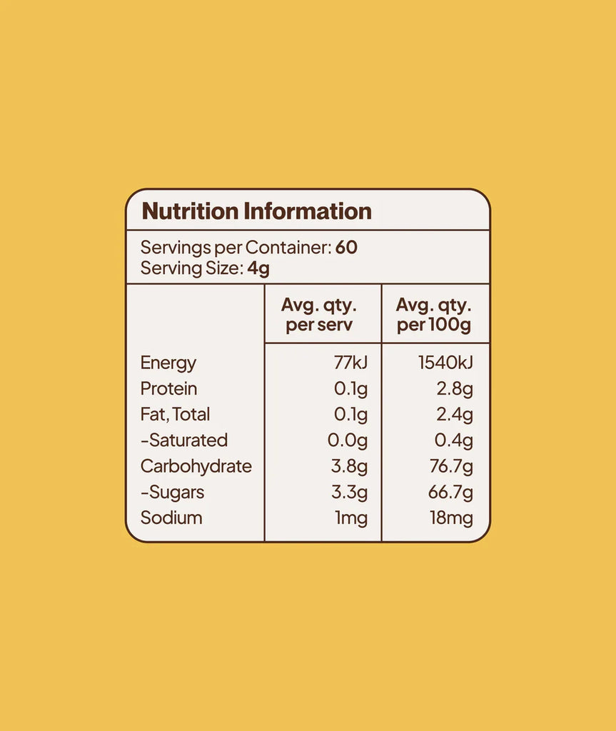 Organic Unrefined Cane Sugar, Organic Spice Powders [Turmeric, Cinnamon, Ginger, Black Pepper].