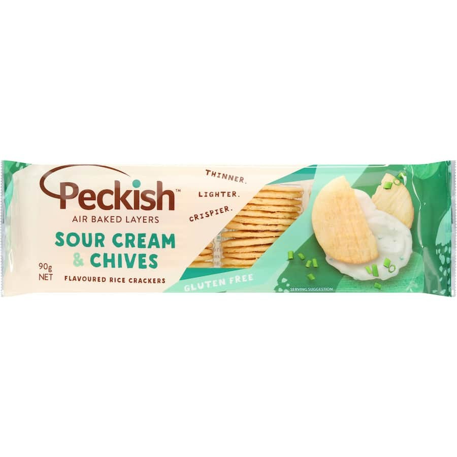 Peckish Thins Rice Crackers Sour Cream & Chives 90g