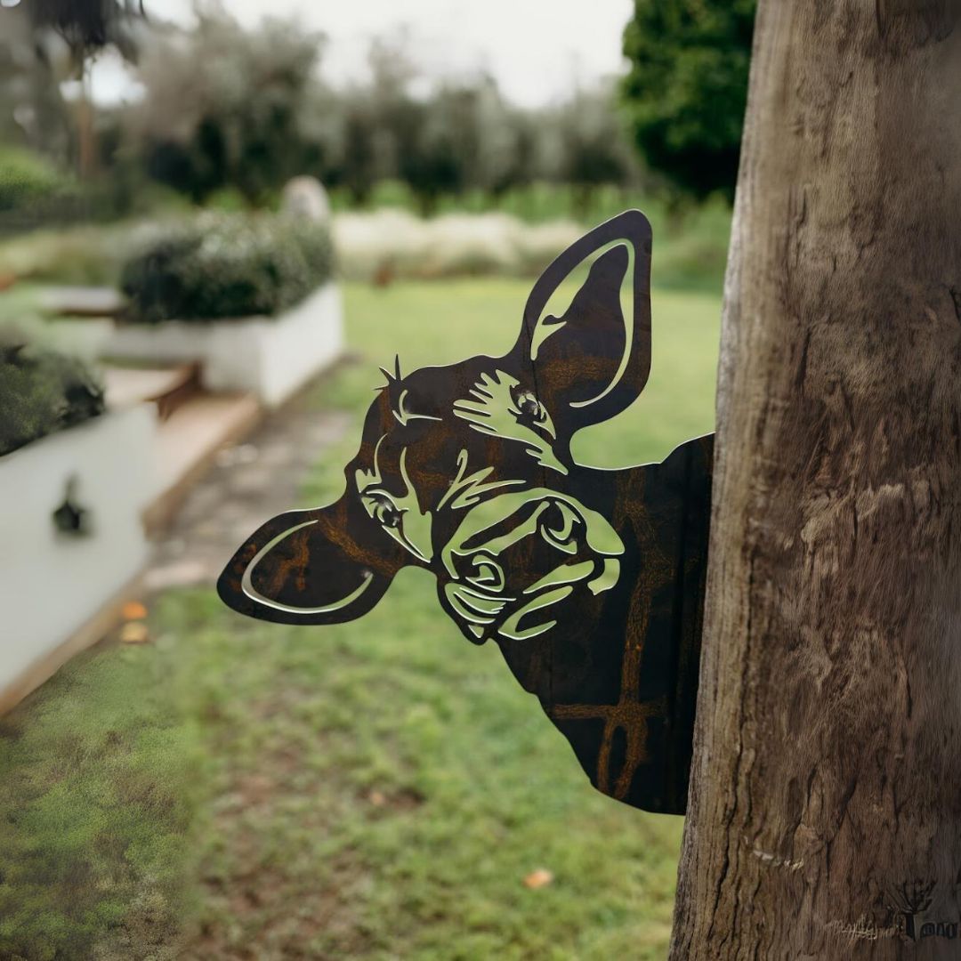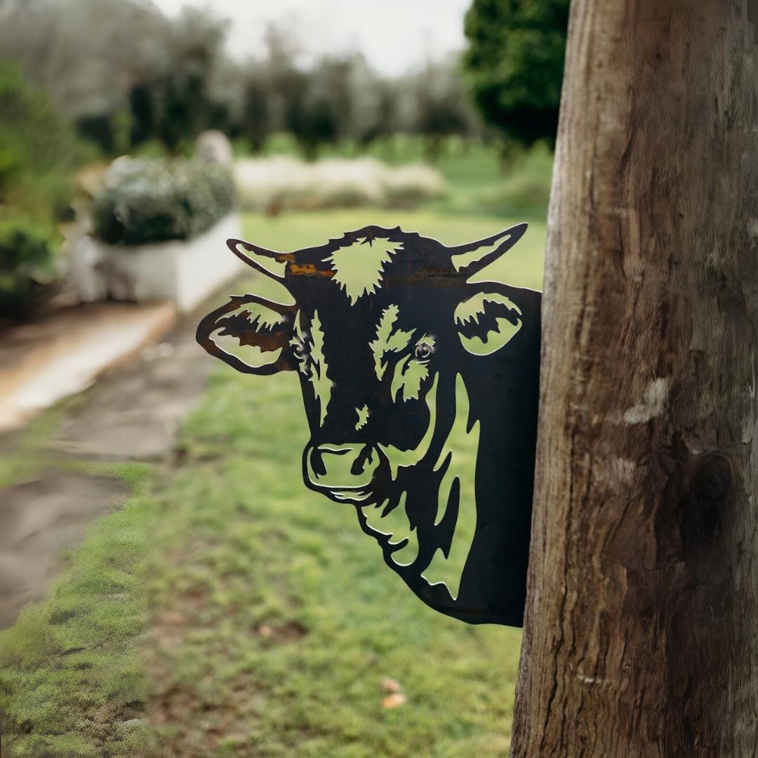Moooo-ve over boring outdoor decor - it's time to bring a little bit of farmyard fun to your space with this cow head sculpture made from corten steel! With its easy screw-in installation, you can have it mounted on your wall or tree in no time! It's the perfect way to add a touch of whimsy to your outdoor space and make all your neighbors moo with envy.