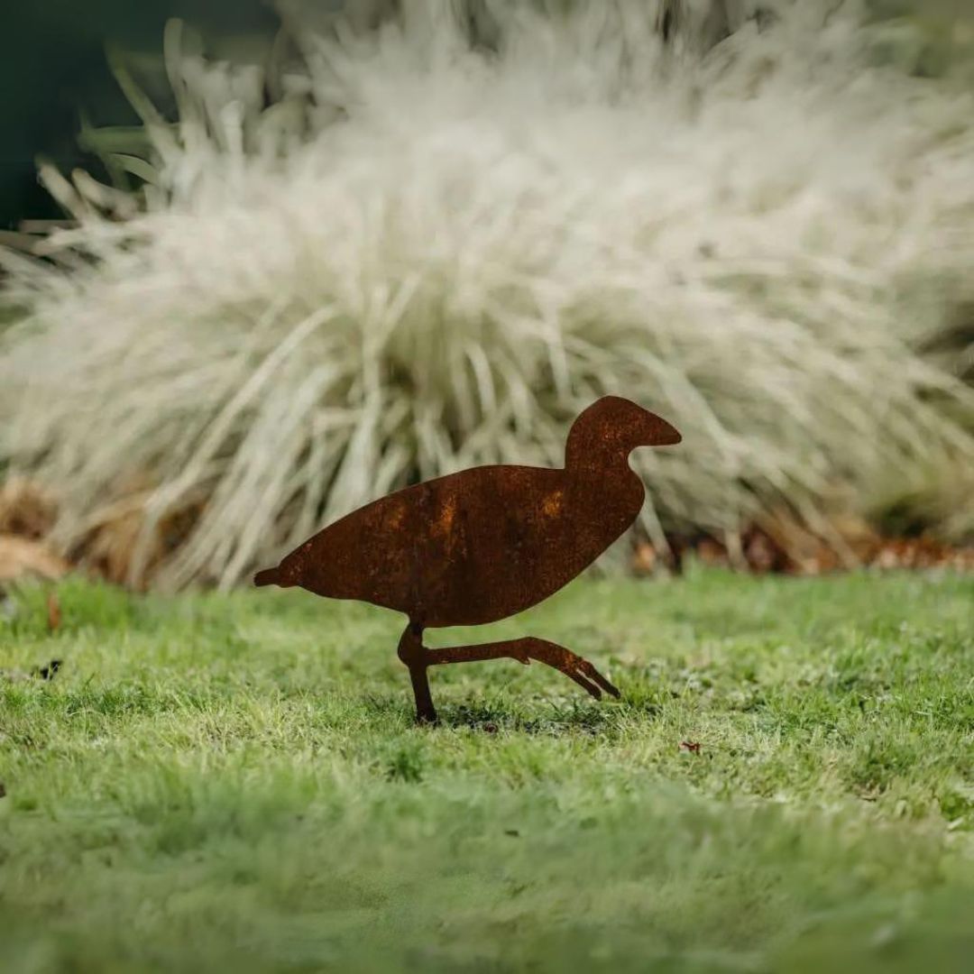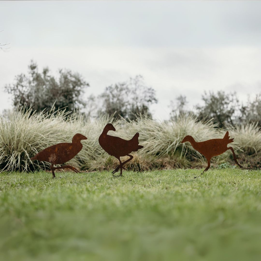 Introducing the funky trio of pukekos made from corten steel - the perfect addition to your garden decor! These adorable birds are sure to impress all your visitors. Plus, installation is very easy - simply pin them to the ground and watch as they come to life. Don't miss out on the chance to bring some Kiwi charm to your garden with these fun-loving pukekos!