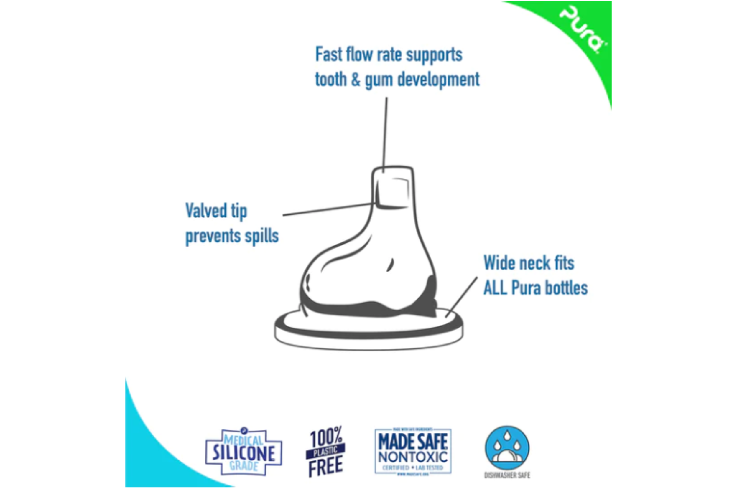 The only toddler and infant bottles without any plastic! Pura Kiki Bottles are made from completely non toxic stainless steel and 100% medical grade silicone, meaning absolutely no toxins leaching into your child's drink.