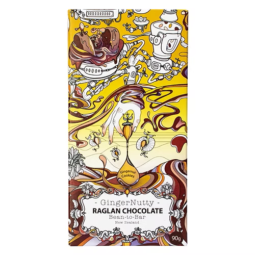 Gingernutty: Caramelised Milk Chocolate with crunch & chunks of gingernut cookies