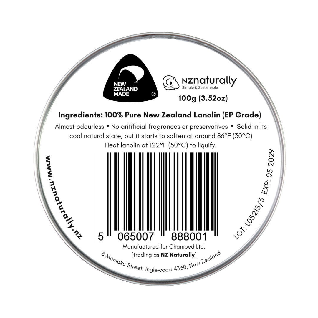 Pure New Zealand Lanolin - EP Grade, Jars (100g)