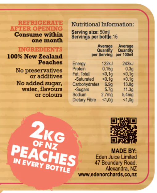 Our Pure Peach Juice is made 100% from Central Otago Peaches, with no added sugars or preservatives. It is a refreshing, subtly sweet drink that has a lovely peach flavour. Mix it with sparkling water, for a moreish afternoon treat!