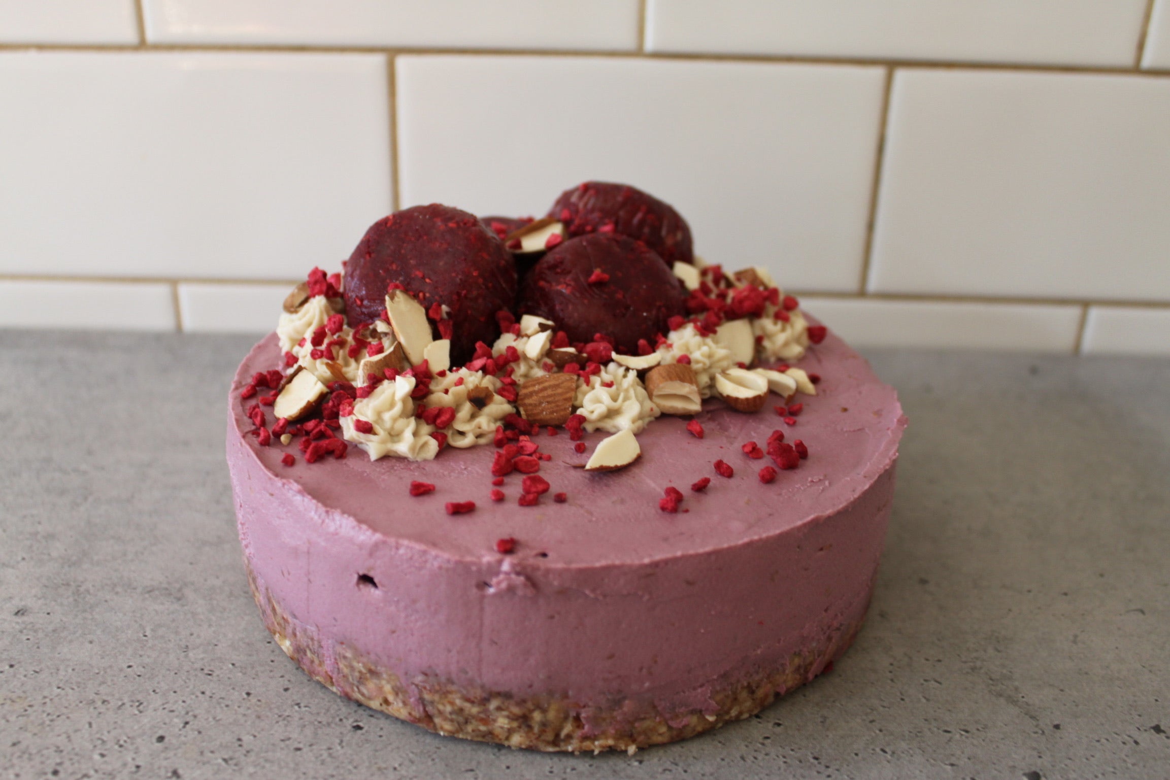 Fresh and fantastic BERRY mousse tart made without gluten, dairy or refined sugar! This tart is slightly smaller than our usual offering and serves 10 generously. It will keep in the freezer for 2 months if needed. A beautiful crunchy activated almond and vanilla base works perfectly with the creamy raspberry cashew mousse filling. Sweetened with lovely local honey or for a vegan option, agave.