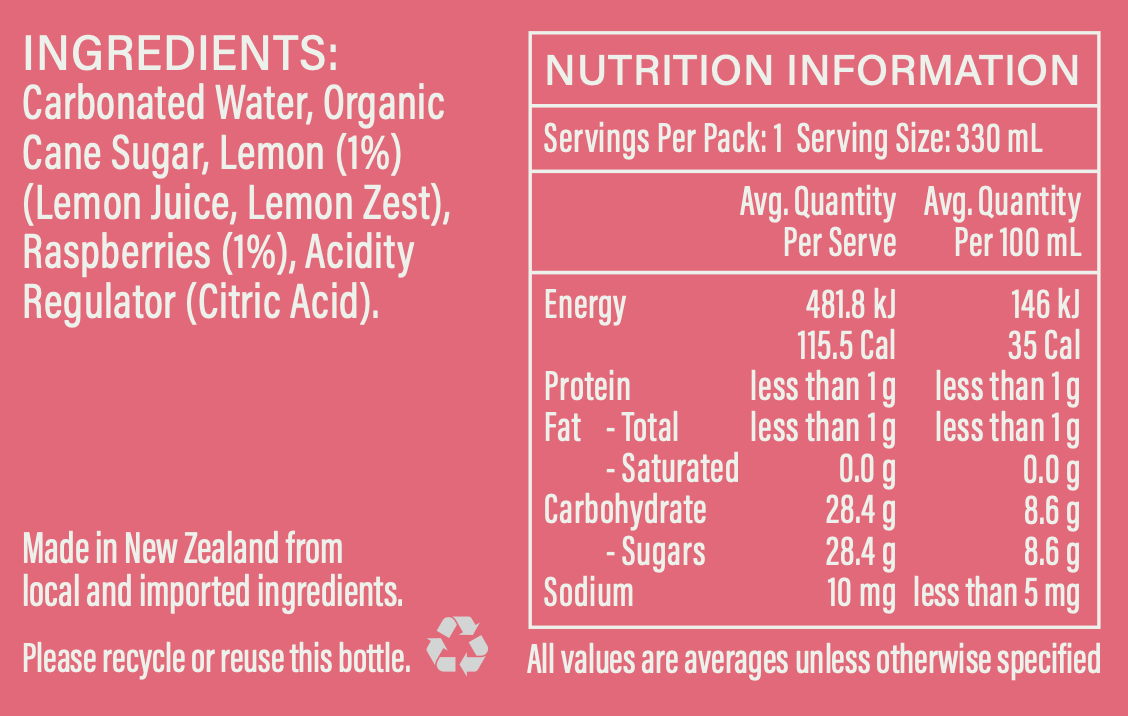 A firm family favourite since way back. Our Raspberry and Lemon combines, well, real raspberries and NZ lemon juice and zest to make a crisp pink drink that ticks all the boxes.