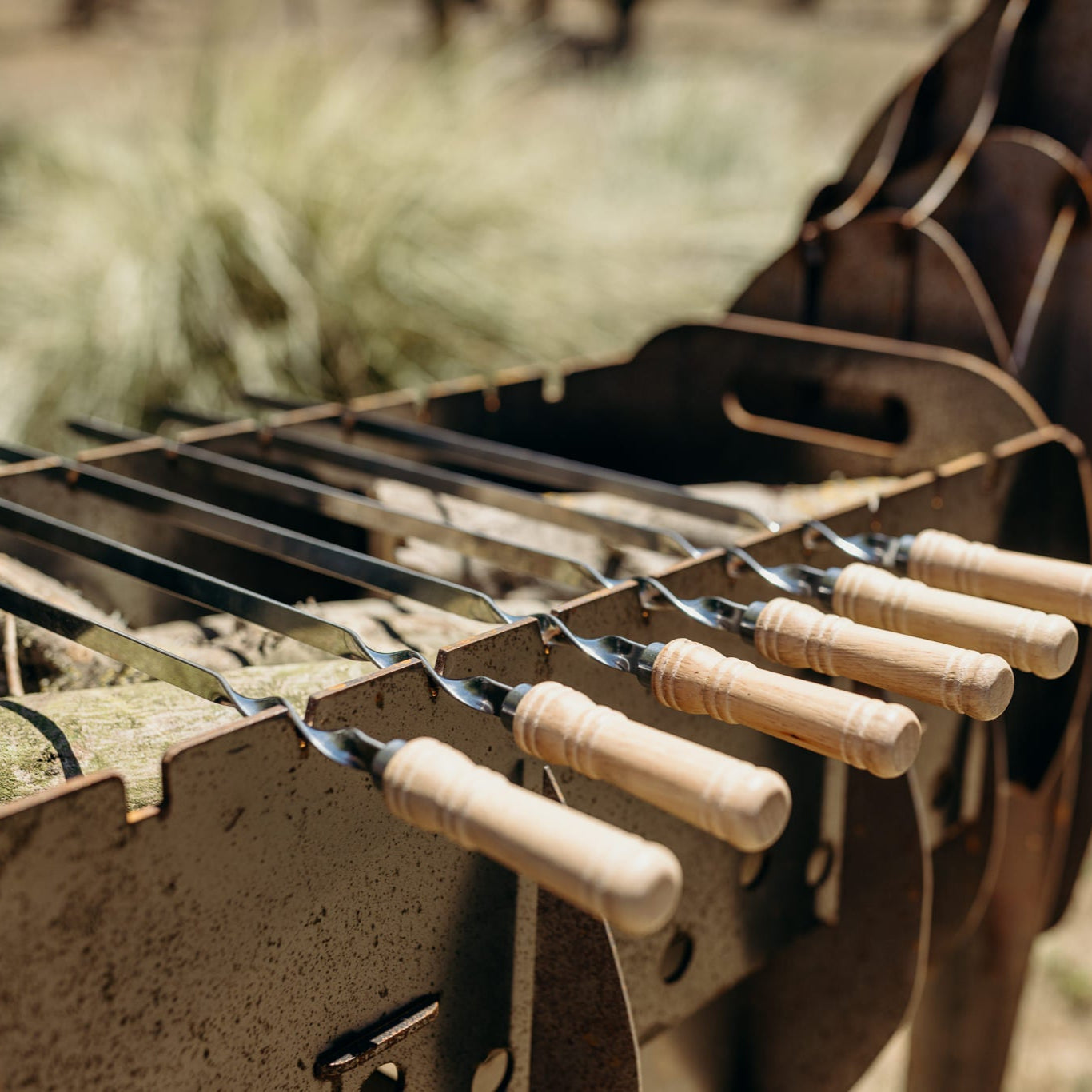 Take your grilling experience to the next level! Designed to fit with our signature Animal BBQ/Firepits, these high-quality skewers are perfect for grilling kebabs, vegetables, or your favorite meats over an open flame.
