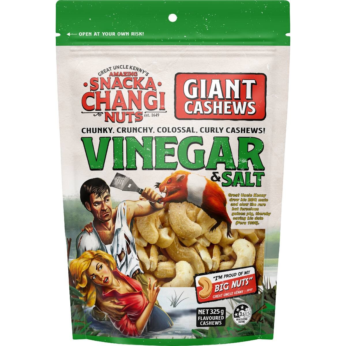 Snackachangi Cashews Vinegar & Salt brings you award-winning taste and quality. These cashews have received recognition for their outstanding flavour and packaging. Each batch is salted not just once, or twice, but three times, ensuring a bold and satisfying snack with every bite.