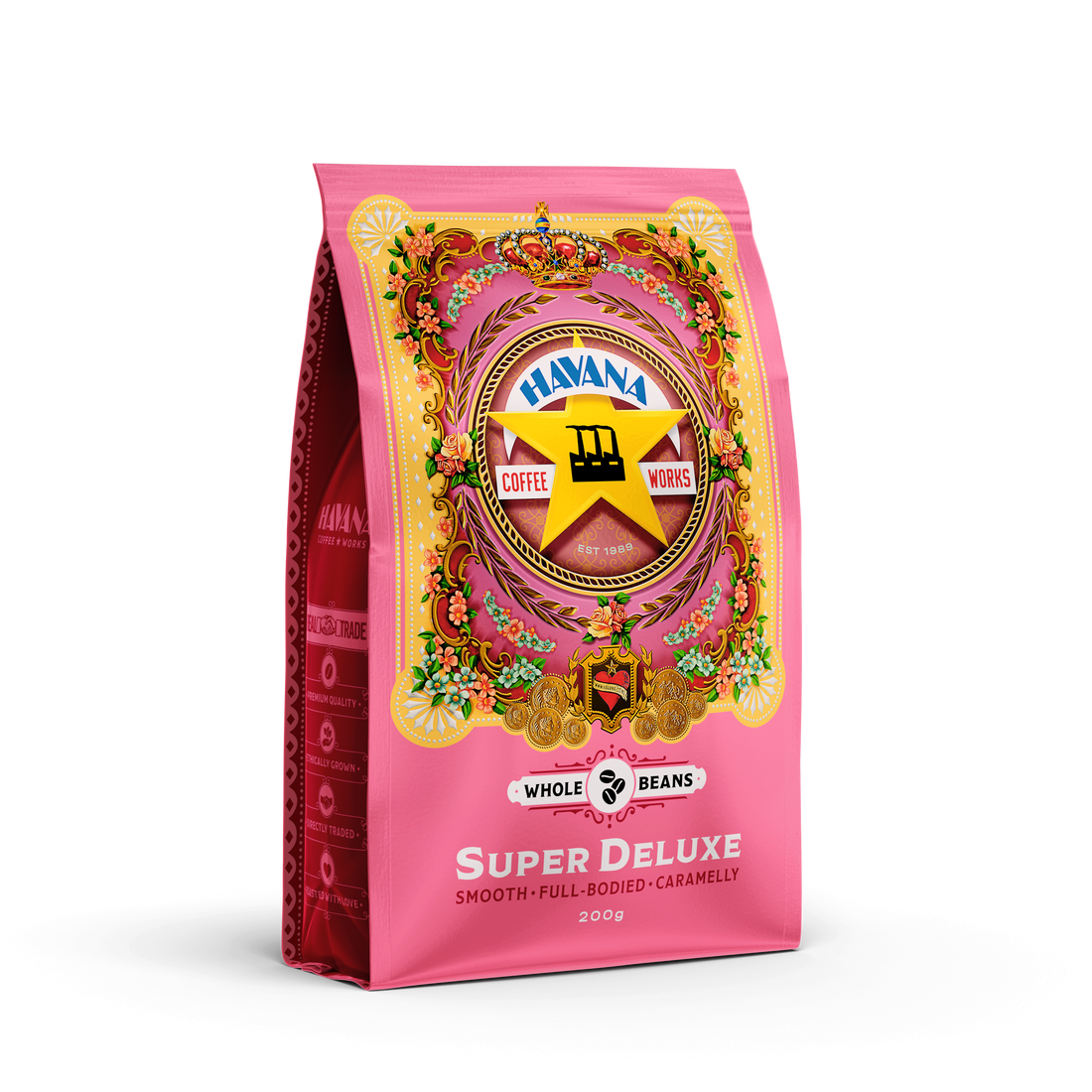 A deluxe blend of coffees roasted with love. An elegant full-bodied biscuity caramel hit, so velvety smooth. Super Deluxe is a coffee treasure you will love to share. Best enjoyed however you like your coffee, we don't judge!