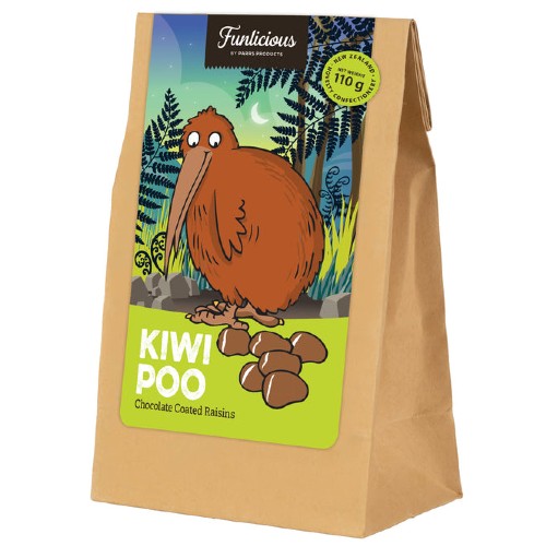Kiwi Poo Chocolate Raisins are a fun treat inspired by the kiwi's unique diet, but don’t worry—you’ll only find sweet chocolate and juicy raisins inside. Enjoy this playful and delicious snack, perfect for chocolate lovers of all ages.