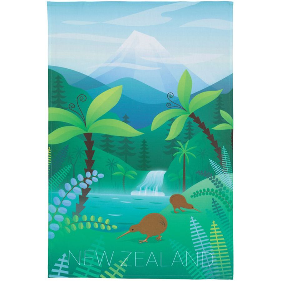 This tea towel features a beautiful design inspired by the stunning landscapes and natural beauty found throughout New Zealand. It's perfect for adding a touch of local charm to your kitchen decor.