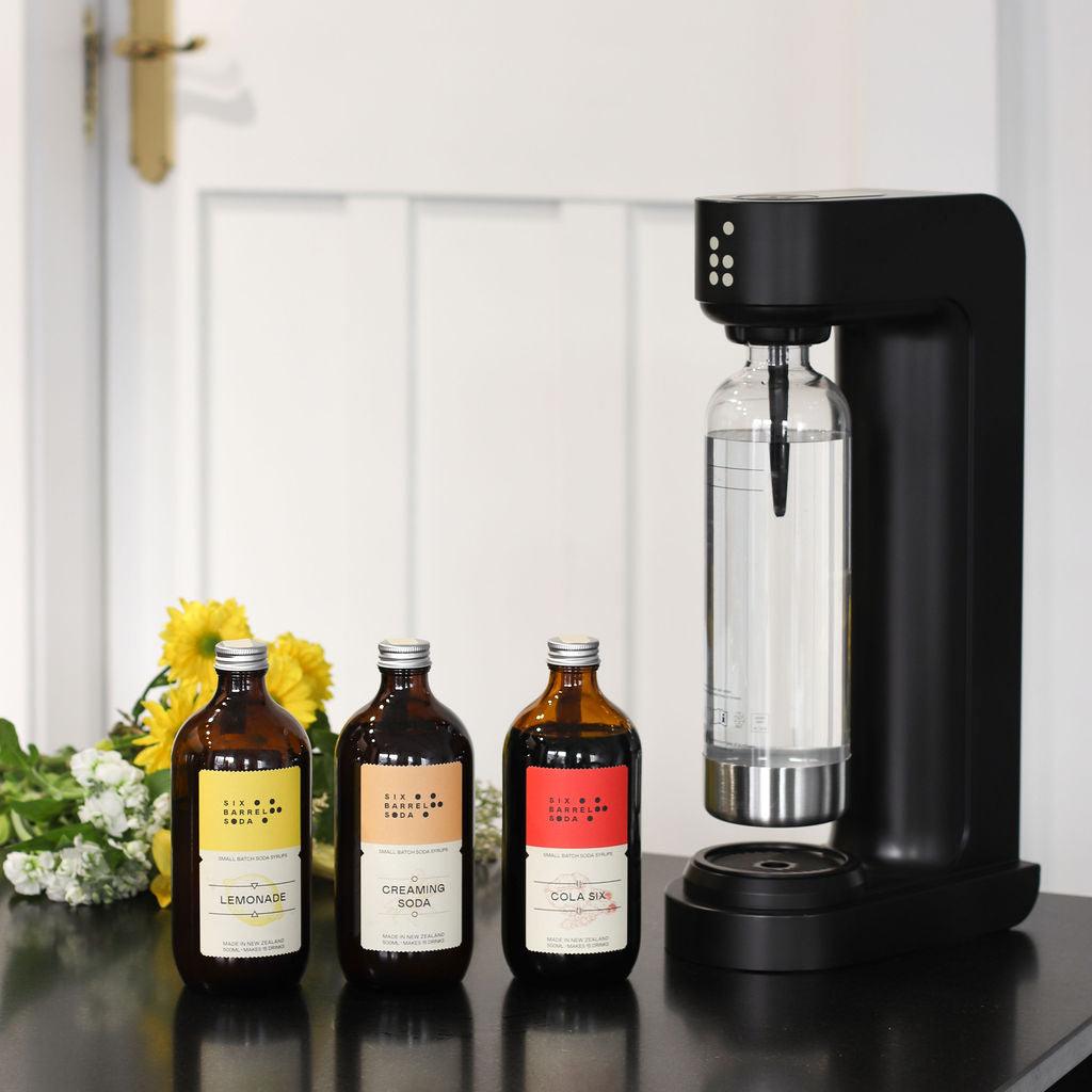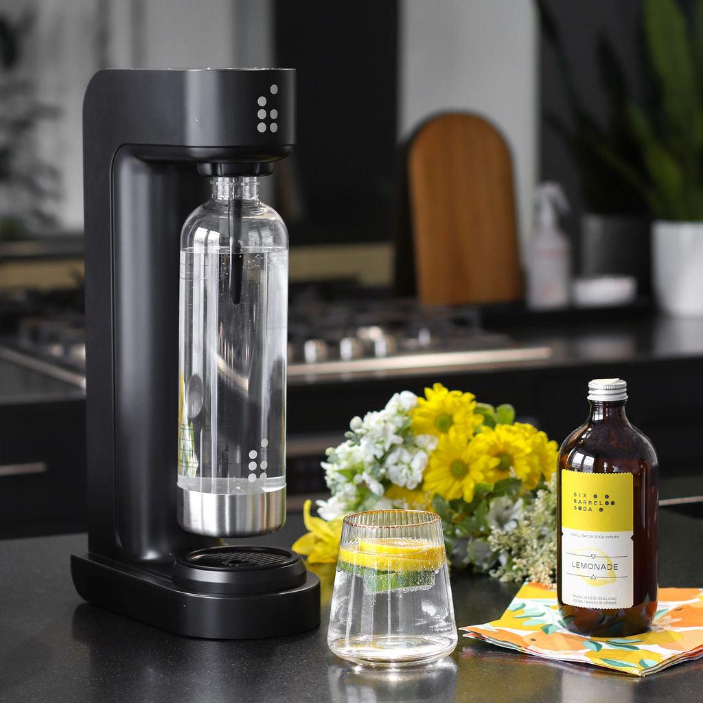 The Sparkler is our very own soda water maker (or carbonator, whatever floats your boat), and a premium SodaStream machine alternative. This sleek soda machine pairs perfectly with Six Barrel soda syrups at home, so you can make wonderful drinks without the waste of single use plastics.