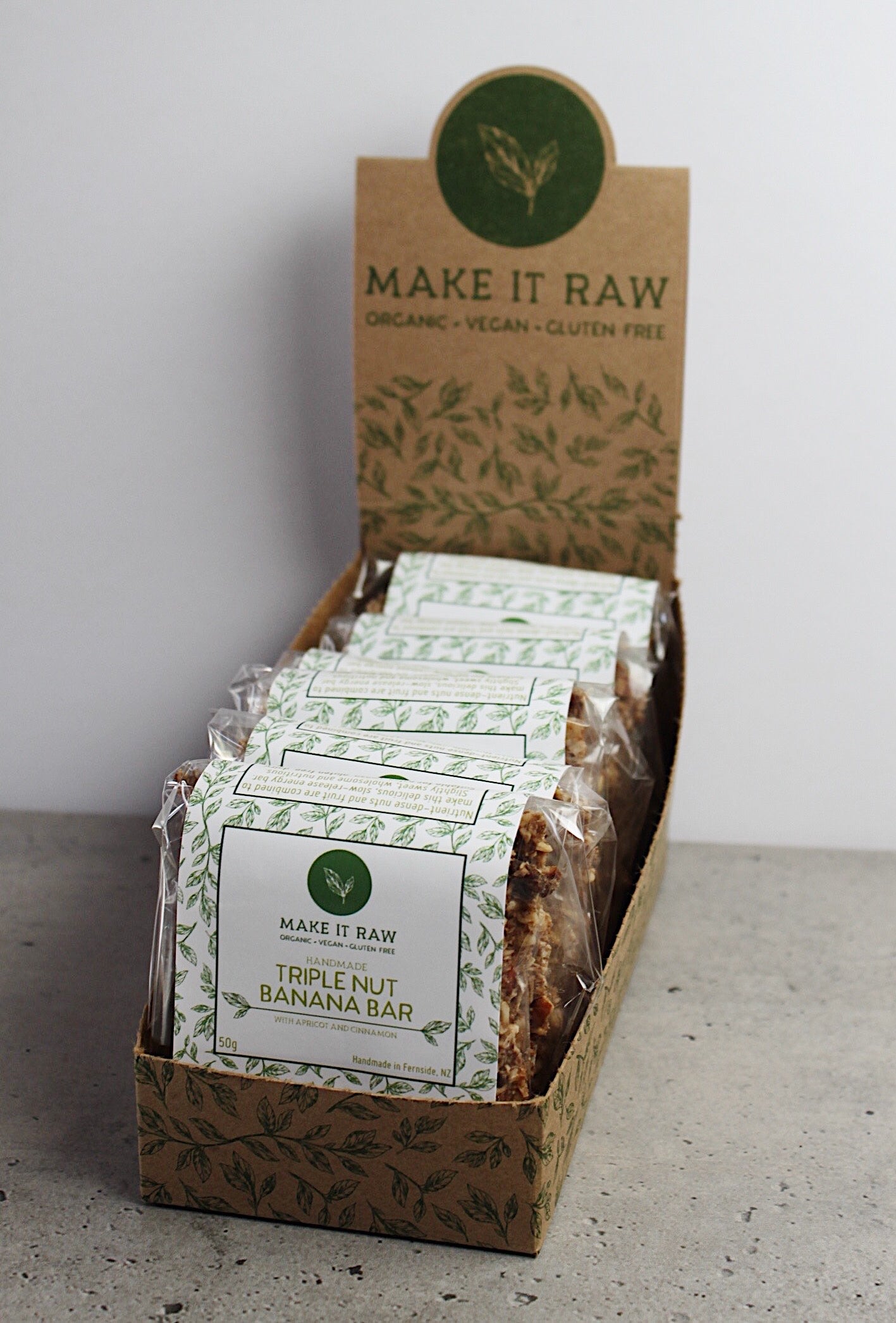 Ingredients: Organic Banana (33%), nuts (31%) (activated almonds, organic brazil nuts, organic cashew nuts), organic dried apricot (8%), organic coconut, organic cinnamon (0.1%), NZ sea salt.