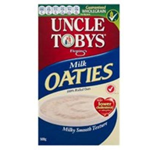 Oats are a natural supergrain, providing excellent nutrition and delicious flavour. Rich in beta-glucan, they can help support healthy cholesterol levels. Made from 100% wholegrain oats, Uncle Tobys Rolled Oats Milk Oaties are high in fibre and have received the Heart Foundation tick of approval.