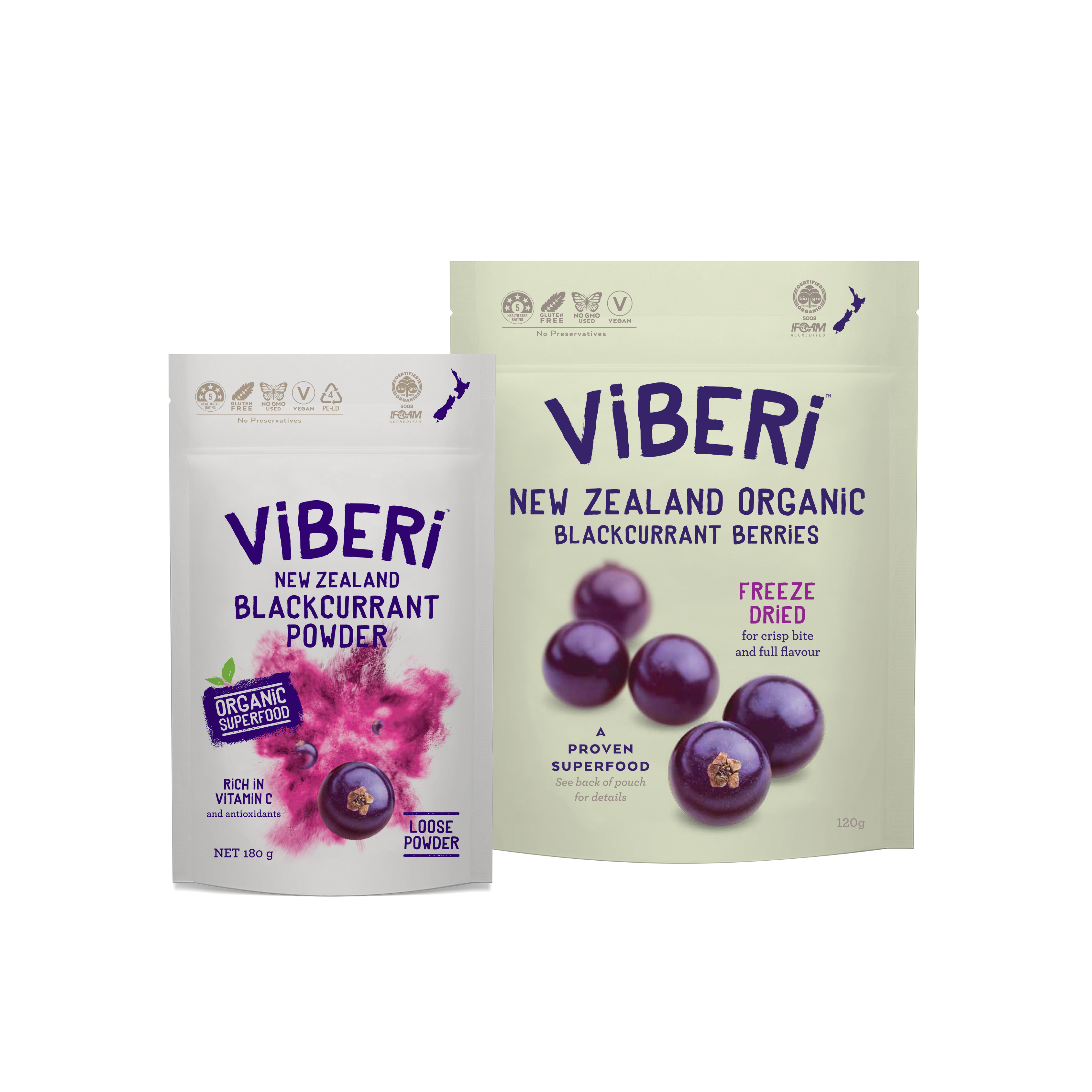 This bundle includes fan favorites, New Zealand Organic Blackcurrant Powder (180g) and New Zealand Organic Freeze Dried Blackcurrants (120g). Enjoy them in smoothies, baked goods, salad dressings, yoghurt bowls, and more!