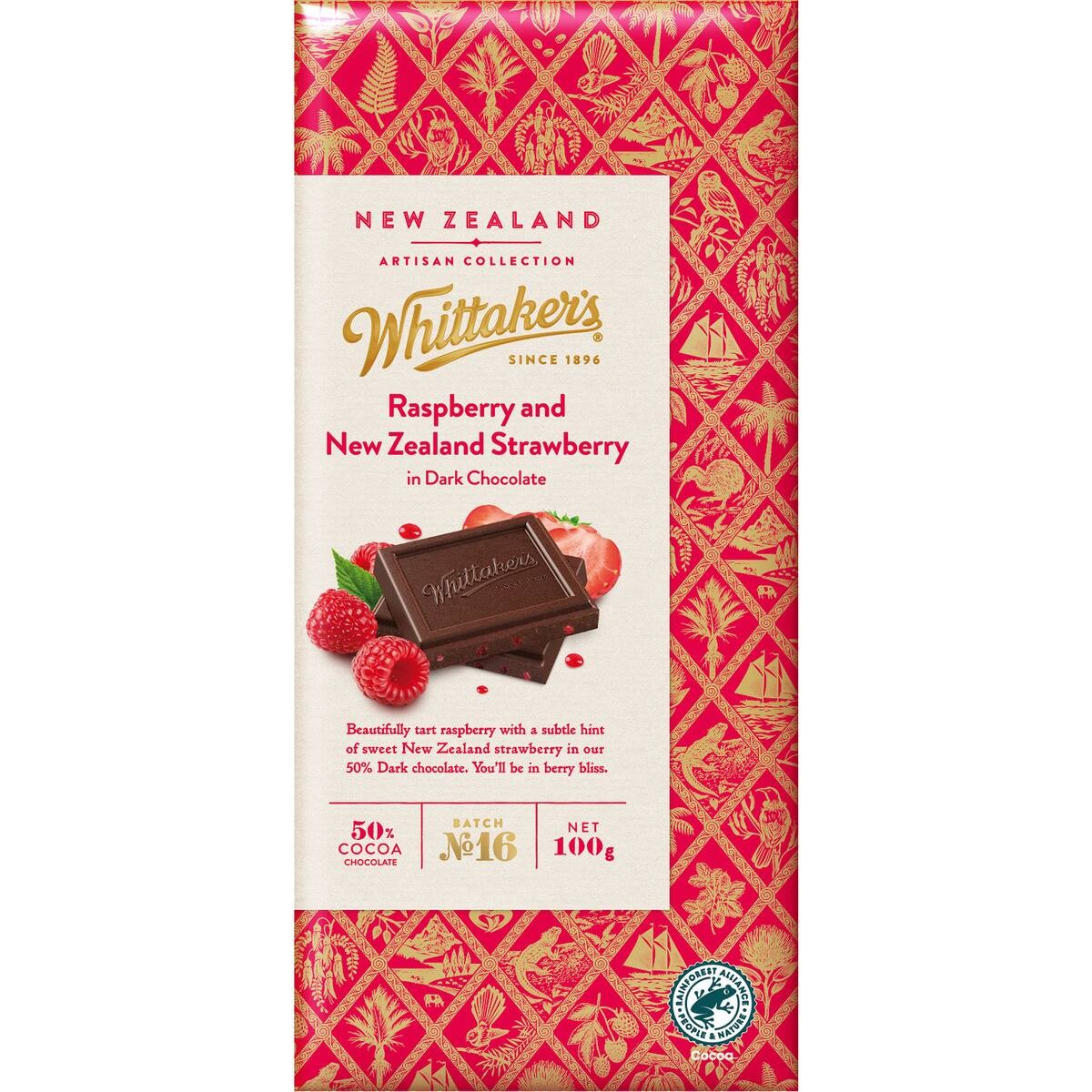 Whittakers Artisan Raspberry and NZ Strawberry Dark chocolate 100g